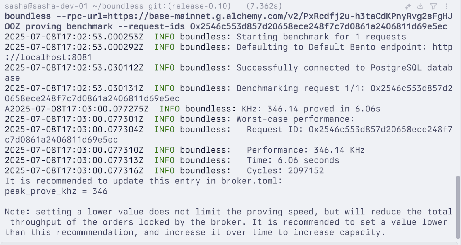 boundless proving benchmark --rpc-url <RPC-URL> --request-ids <IDS>
