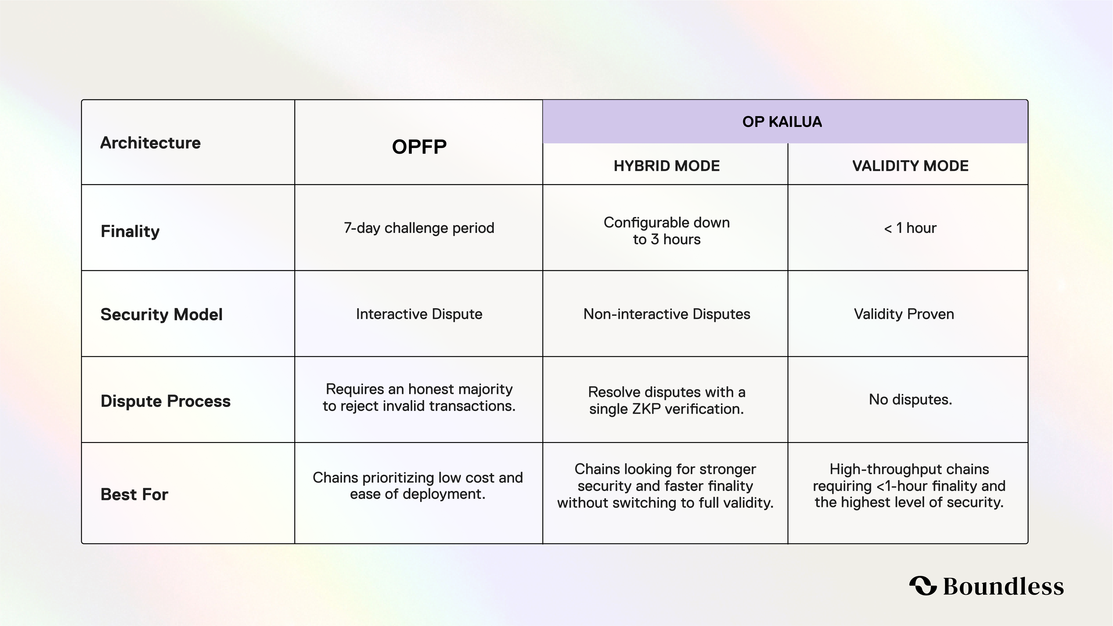 - Validity Mode: removes the dispute phase entirely and proves every block, pushing finality below one hour.